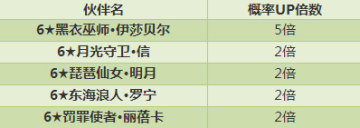 另外,在活动期间,通过合成获得指定伙伴的概率将较平时有大幅度提升,尤其是人气非常高的“6★黑衣巫师·伊莎贝尔“将提升为平时的5倍
