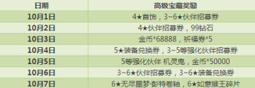 而每天6个藏宝关卡奖励中,将至少包含2个 “高级宝藏奖励”: