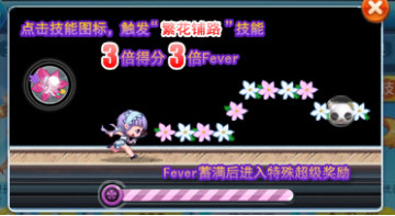 “繁花铺路”在一定时间内,使前方的金币变成3倍得分的高分鲜花,并且按一般吃金币涨fever的速度百分比,使用繁花铺路技能吃到的鲜花fever涨幅百分比也提高3倍,举例:吃一串金币fever涨20%,使用技能就是60%,根据角色等级不同,满级后技能生成6秒。