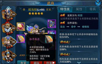 从特性可以看出,司马懿绝对是一个专注输出伤害的武将,同时作为军团型武将,对于麾下士兵的强化是和自身一样的,所以培养为一个纯法术伤害武将就对了。