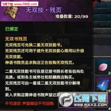 换取无双技能书,20个残页可以换取1星或者2星低级无双技能书。
