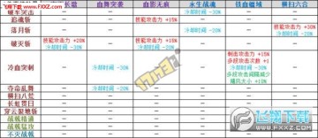 表2,可以看出寂灭长歌6对于[破灭斩]技能攻击力的增加已经达到50%,同时减少了30%冷却时间,和血影无痕3散搭[破灭斩]攻击力和冷却增幅明显,可以做6+3;还有[横扫八荒]技能攻击增加20%,冷却时间减少25%,攻击范围和移动速度增加,增加的比较全面(但没什么卵用)。血舞突袭6对于[冷血突刺]、[夺命乱舞]、[横扫八荒]这3个出了名的墨迹技能增加技能攻击力很明显,也减少了攻击次数,使得技能不那么墨迹,不过和9件套比起来还差得有点儿远。血影无痕6,小技能加的太明显,显然这套不可能做为输出套了,搬砖效果很好。永生战魂6,你还是也去搬砖吧。横扫六合6,你也跟着去搬砖!最后,铁血疆域6,[不灭战戟]换装必备(20级不灭+铁血6=60%暴击伤害)。