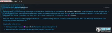 即便如此,暗牧在7.1.5还是会有大量显著的改动。并且一旦确定下来,我们还想试试其他的狂乱值流失速率来确保所有事情都像它应该有的样子一样。