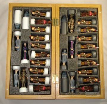 这幅日本风格的国际象棋不仅制作精美,而且是用的竹子材质制成,内里每一个棋子都雕刻成日本独具特色的部队单位。
