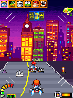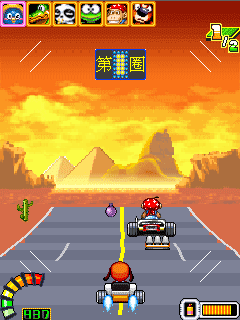 练习模式是随机出车。飞行和导弹只有特殊车辆可使用,游戏中的前三名才能获得奖金。长按左右键会漂移,增加氮气。