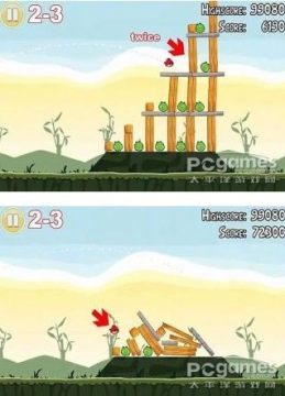 《愤怒的小鸟》这款游戏的故事相当有趣,为了报复偷走鸟蛋的肥猪们,鸟儿以自己的身体为武器,仿佛炮弹一样去攻击肥猪们的堡垒。游戏是十分卡通的2D画面,看着愤怒的红色小鸟,奋不顾身的往绿色的肥猪的堡垒砸去,那种奇妙的感觉还真是令人感到很欢乐。而游戏的配乐同样充满了欢乐的感觉,轻松的节奏,欢快的风格。不过在进行游戏的时候却没有这样的音乐,有点可惜。但是将鸟儿们弹射出去时,鸟儿的叫声倒是给人很好笑的感觉。