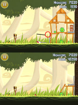 《愤怒的小鸟》这款游戏的故事相当有趣,为了报复偷走鸟蛋的肥猪们,鸟儿以自己的身体为武器,仿佛炮弹一样去攻击肥猪们的堡垒。游戏是十分卡通的2D画面,看着愤怒的红色小鸟,奋不顾身的往绿色的肥猪的堡垒砸去,那种奇妙的感觉还真是令人感到很欢乐。而游戏的配乐同样充满了欢乐的感觉,轻松的节奏,欢快的风格。不过在进行游戏的时候却没有这样的音乐,有点可惜。但是将鸟儿们弹射出去时,鸟儿的叫声倒是给人很好笑的感觉。