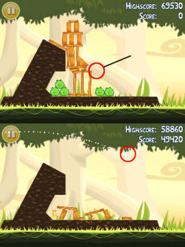 《愤怒的小鸟》这款游戏的故事相当有趣,为了报复偷走鸟蛋的肥猪们,鸟儿以自己的身体为武器,仿佛炮弹一样去攻击肥猪们的堡垒。游戏是十分卡通的2D画面,看着愤怒的红色小鸟,奋不顾身的往绿色的肥猪的堡垒砸去,那种奇妙的感觉还真是令人感到很欢乐。而游戏的配乐同样充满了欢乐的感觉,轻松的节奏,欢快的风格。不过在进行游戏的时候却没有这样的音乐,有点可惜。但是将鸟儿们弹射出去时,鸟儿的叫声倒是给人很好笑的感觉。