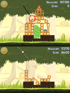 《愤怒的小鸟》这款游戏的故事相当有趣,为了报复偷走鸟蛋的肥猪们,鸟儿以自己的身体为武器,仿佛炮弹一样去攻击肥猪们的堡垒。游戏是十分卡通的2D画面,看着愤怒的红色小鸟,奋不顾身的往绿色的肥猪的堡垒砸去,那种奇妙的感觉还真是令人感到很欢乐。而游戏的配乐同样充满了欢乐的感觉,轻松的节奏,欢快的风格。不过在进行游戏的时候却没有这样的音乐,有点可惜。但是将鸟儿们弹射出去时,鸟儿的叫声倒是给人很好笑的感觉。