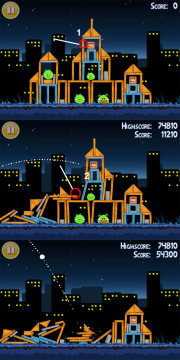 《愤怒的小鸟》这款游戏的故事相当有趣,为了报复偷走鸟蛋的肥猪们,鸟儿以自己的身体为武器,仿佛炮弹一样去攻击肥猪们的堡垒。游戏是十分卡通的2D画面,看着愤怒的红色小鸟,奋不顾身的往绿色的肥猪的堡垒砸去,那种奇妙的感觉还真是令人感到很欢乐。而游戏的配乐同样充满了欢乐的感觉,轻松的节奏,欢快的风格。不过在进行游戏的时候却没有这样的音乐,有点可惜。但是将鸟儿们弹射出去时,鸟儿的叫声倒是给人很好笑的感觉。