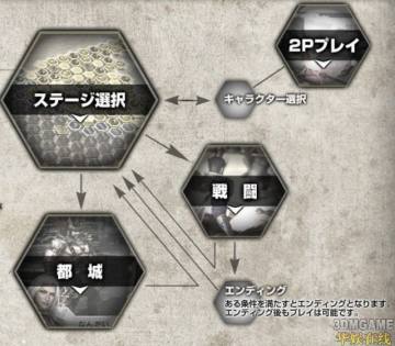 《外传剧本》:深入发掘武将们魅力的剧本,如吕蒙为了提高智勇而修行的关卡。别的,还能通过网络或画面分割进行协力游戏!编年史模式流程图: