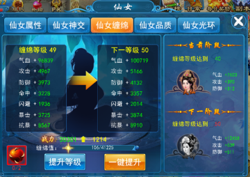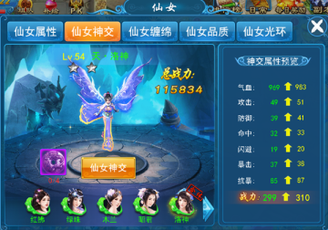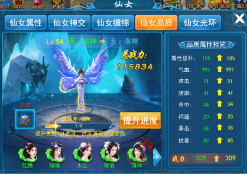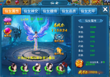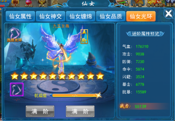 仙女系统包含仙女属性、仙女神交、仙女缠绵、仙女品质和仙女光环