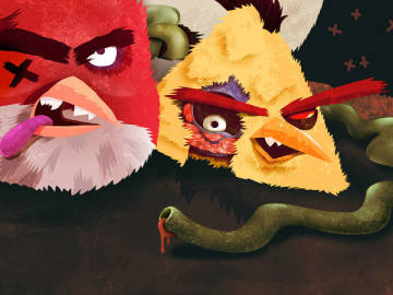 近日,波兰一家插画工作室出品了一套《愤怒的小鸟》僵尸版插画。我们所熟悉的小鸟摇身一变成为了嗜血的僵尸,它们的目标就是吃掉绿猪的脑袋。奇怪的是,即使变成僵尸,小鸟们也仍然显得很萌……