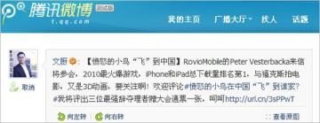 Rovio Mobile近日为《愤慨的小鸟》(微博)开通腾讯微博,将于第临时间与网友共同享受相关资讯。