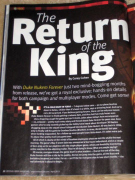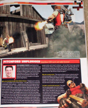 前外媒将最新一期Xbox360官方杂志的《永远的毁灭公爵》扫描图贴出网络,包含了最新游戏截图和大量新细节,其中包括首批多人模式截图。