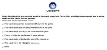 凭据一则育碧(法国)的客户调查消息,暗示育碧正在考虑把《幽灵战士》和《刺客信条》系列搬上荧幕。