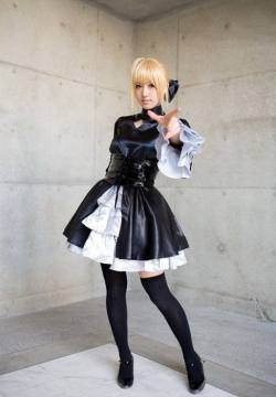 这位美女COS的Saber实在是十分给力哦,特别是第一张,直接将我萌杀掉了!!