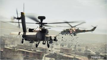 黑鹰战斗直升机,不光有机枪手会在机体侧面对我方同伴进行援护射击之外,机体本身还附装格林机关炮,可说是非常有力的攻击火力。飞行炮艇「AC-130」,则是装备有迫击炮以及格林机关炮等大小炮座的重武装大型航空兵器,当玩家在驾驶这个机体的时候,将会化身为机体上的炮手,并使用各种强力武器切换运用来将地面上的敌人给全部扑灭!
