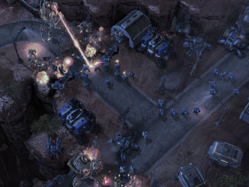如果这套战术成功了的话,有些神族会直接GG。有些神族会回家舔伤口。但最怕的是反大一波的神族,因为这个时候你基地里什么都没有,所以,恶徒那边能多拖延时间,就多拖延时间,基地应该在去骚扰的同时出坦克的。虽然神族反打可能会很伤,不过要记住,他比你还要伤。 指望早期取胜的心理是投机的。一个有实力的神族都能应对这些开局。星际2的中期推进和星际1的很像。但有一个非常不同的地方:没有地雷!没有地雷人族要非常注意自己的侧翼。好消息是你的部队的正面交战能力比星际1更强。因为恶徒对狂热者(轻型)的杀伤更强,而且是范围杀伤。