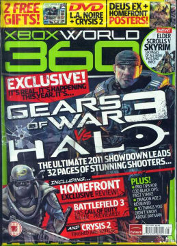 率先报出这一猛料的是五月期的《Xbox World 360》杂志,他们在杂志封面上以“《战争机器3》大战《光环》”作为报道标题,并在显眼位置上刊登了报道摘要:独家!真的发生了,就在今年……大家为你准备了32页的详细报道。