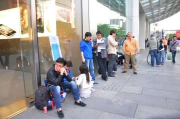 各个苹果专卖店门口从昨天晚上就开始排起了长队。