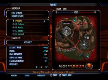 武器装备在左下角,右边是降落点(要在红圈外面才能降落)