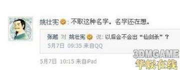 姚仙素来以为人低调著称,对于玩家他从来不会把“仙剑之父”的光环放在头上与玩家交流,而是以朋友的身份尽可能多的与每一位玩家沟通。在刚刚过去的周末里,姚仙又利用自己的休息时间在微博上回答了玩家提出的问题。