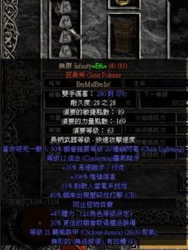 这个公式会把普通等级的暗金武器提升为扩展等级的暗金武器,原有属性不变,只是提升物品的基础类型,ETH 物品同样有效.