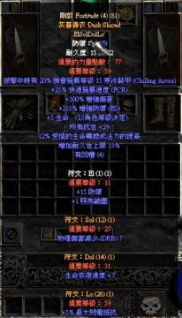 1 Tal(7#) + 1 Shael(13#) + 1 完美白宝石 + 普通暗金防具 = 该防具扩展版