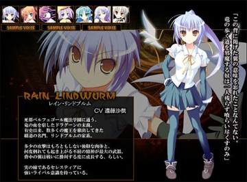 主人公。龙之末裔、名门Lindwurm家的千金。强韧的体质与不屈的精神是她最大的武器,据说背后的羽翼会在战斗胜利会成长。