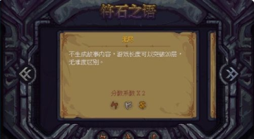 无尽模式如上所示需要对应的铜银金3个符石才能开启,只在下次冒险中有效,奖励是得分X2。