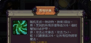 野性转换技能有点类似德鲁伊的变形,然而效果有点看脸,不过幸运的是每种形态都不弱。