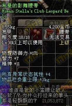 看到这个套装效果不禁让我想起来了上一期的PK神器:树魔的野熊胫甲,不过那个是下装,这个却是套装效果不能并存,但是被击恢复30%的HP,在PKC还有效的那个年代也是很变态的存在,不过穿野熊胫甲PK的人能遇到,因为毕竟是单件,而穿这个套装的人也是几乎不存在的。