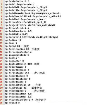 虫虫大作战修改秘籍(不用修改器) 来源: 飞翔小编 2011/6/15 8:52:51 浏览量:23454 虫虫大作战是一款很不错的小游戏~只是有几关难度大点~不想用修改器的话试试这个,这是我个人在游戏中研究出来的虫虫大作战修改秘籍,分享一下。先找到X:\虫虫大作战(BugBits)鸾霄汉化版\data\scripts\bugs里面的wasphero.vsc 右键用记事本打开~就是胡蜂英雄~它在电脑那边出场率比较低~改它好点请根据个人口味适量修改~
