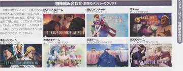 1(k',kyo,ash)2(kula,yuri,athena)3(mai,elizabeth,king)4(chin,hwa,king)5(andy,robert,benimaru)6(ash,shen,duolon)