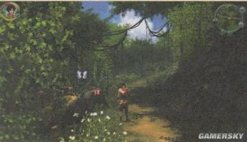 必须提到的是游戏画面的动态效果更强于静止的截图这是因为场景中充满了“动”的因素,比如随风摆动的树枝和跟着晃 动的树影,即便斑驳的树影投在路边的草叶上也能看到一根根草叶上的阴影在变化。另外许多场景的天空中都不时有飞鸟掠过,或者有树叶缓缓飘曳落下,笔者曾经在枫丹谷因贪看湖边水鸟流连忘返而忘记了打怪前进。在游戏中段到达某个“仙剑”系列的经典地点时场景的细节设定达到了本作巅峰,处处有惊喜……为了不影响到大家第一次亲眼这个场景时的惊喜我就厚道地不放截图了。不过相比场景的出色,游戏中3D人物建模要略逊一筹。综合画面来看即便“仙剑5”跟国外的顶级大作还有差距,但考虑到游戏的开发引擎,能有如此表现足以超过笔者的期待值了,希望玩家在亲自体验后能有和笔者一样的感受。