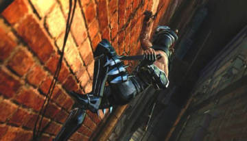 在试玩的一开场,我要控制隼龙悄悄的从背后干掉一个拿着火箭筒的士兵,好吧,其实这种感觉还是很不错的。当我悄悄的走到士兵旁边时,系统提示我按三角键,虽然不太想,但我还是按照它的只是做了,于是隼龙的剑贯穿了敌人,解决掉之后还用剑在死尸身上蹭了蹭,以擦除掉血迹。