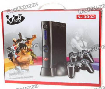 这台名为"VBOX II"的主机(也就是说这玩意还出过一代),单从外观来看已经足够雷到一帮人:手柄完全是模仿PS3的DualShock 3制作,机身则是山寨的Xbox 360,底下还有个像Wii一样的支架,可谓是名副其实的三机一体。
