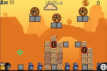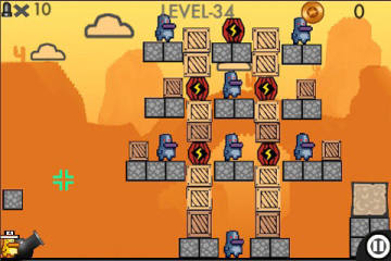愤怒的鸭子这款游戏的画风可是非常让人汗颜,仿佛回到了红白机时代,好在游戏性还有点意思,玩家只要点击屏幕,即可向该方向射出一颗子弹,子弹会无视重力影响,在屏幕间来回反弹撞击一段时间,能消灭多少敌人,就看这颗子弹打的有多好了……