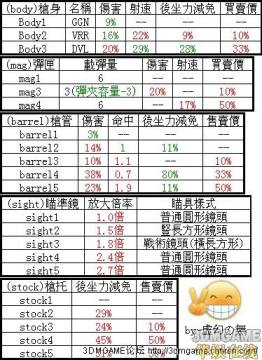 添加了JAKOBS的部份数据,经测试,除了STOCK之类后坐力无法以我的能力测得以外,枪身,瞄准镜,弹匣是和ATLAS的属性一样的,我把测试后的枪管数据发上来(基本上来说后坐力的属性是差不多的)