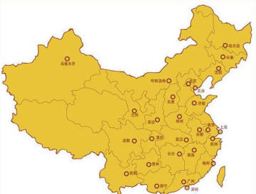 上图为《仙剑5》全国发售的 实体店城市地图。