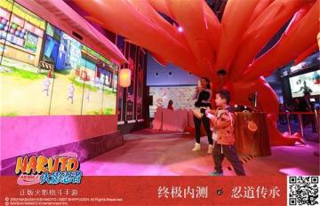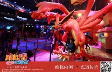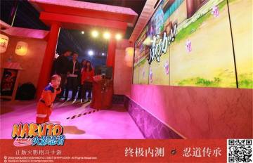 在九尾身后,是以“短册街”为背影的忍术互动专区。玩家在这里通过体感捕捉技术进行忍术互动。火影粉们在此进行忍术结印,即可发动“多重影分身之术”,将自己的身影烙印在短册街。