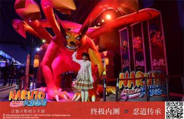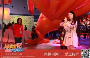本届TGC最大的焦点,莫过于火影忍者展区中巨大的九尾雕塑。高4.5米、全长近10米、总重达5吨的巨大九尾一经亮相便成为本届TGC中的标志性建筑。相比普通观展者,这个几近于真实比例还原的巨大妖兽在火影粉丝面前得到了更加震撼的体现。当它得以冲破次元界限,竟掀起了所有火影粉心中情感的巨浪,敬畏?热爱?一切的感动交杂,使观看其的所有火影粉几近落泪的同时,更是自动献上膝盖膜拜!