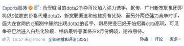 微薄爆料广州新宽联集团九位数天价签约DOTA2