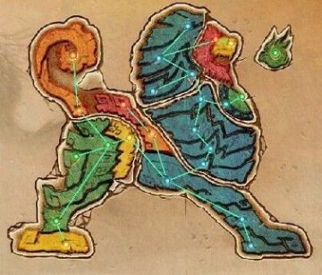PS:兰生比较特别,如果走主流套路可以出两个全套(但是属性会很鸡肋,五行全部都试验过了)!如果出两个全套,无非就是水和木!出水是肯定的,如果把狮头那快12个点都连起来出水,处男还是建议各位不要这样做。因为很吹亏,靠边的4个水属性加起来才加48点神,这样加太鸡肋了,所以我们放弃边角连水、转到狮身的下方干线连至右脚掌出水全套。。而出木看个人喜好,不出木的话、问题也来了,就算不出木、兰生在属性上加木也很吃亏!所以处男建议、兰生木属性技能出个摘叶即可(配合火天印放组合技),其余的加其他属性提升兰生的综合实力!兰生没必要出木系技能、因为玉姐和襄铃都出了木系很多技能。。是因为兰生的组合技存在,所以给兰生出个摘叶!研究了很长时间,如图就是最佳方案,虽然是另走别径、但是请相信,这样的兰生很NB!!