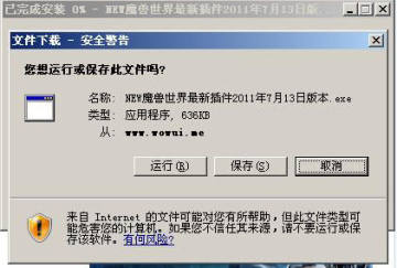 以上的两张截图来自WOWUI插件下载时候的界面,细心的玩家可以发现下载的文件后缀名为exe,这并不是魔兽世界插件的文件格式,只有一些含客户端的插件整合程序才可能是exe执行文件,所以请玩家们务必注意自己在下载插件时候以及下载下来的插件也要注意文件夹里面有没有包含可执行文件。