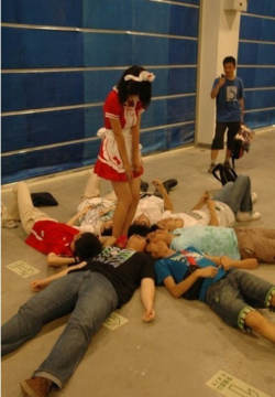 chinajoy彩排?明目张胆围观少女裙底 来源: 飞翔小编 2011/7/24 14:07:59 浏览量:1436 看到这张图片你伤的起吗?chinajoy已经堕落至此了?不过也算是宅男的福利吧,据说这样的事情将会发生在今年的chinajoy上。总感觉站在中间的那个MM好尴尬。也不知道是哪个游戏厂商如此出位啊。