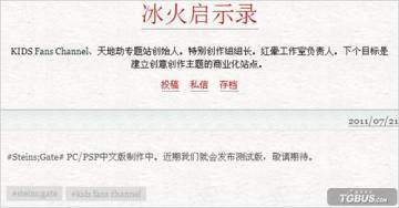 斯坦因之门汉化有戏 测试版将出 来源: 飞翔小编 2011/7/26 11:51:01 浏览量:222 5PB的科学幻想冒险类游戏《斯坦因之门》由KIDSFansChannel宣布汉化,并称近日便会放出测试版,请广大喜爱《斯坦因之门》的玩家们耐心等待。以下是日前KIDSFansChannel放出的一些汉化版截图。