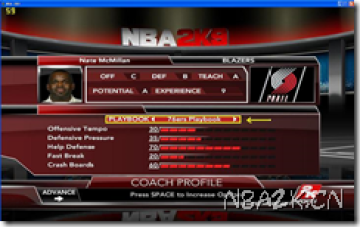 如果你选的队伍没有SG-PF TWO MAN用这个方法调出来:COACHING ——– GAME PLAN——COACH PROFILE ————–PLAY BOOK选76ERS PLAYBOOK也就是76人队的战术,当然也可以换其他队,只要有SG-PF TWO MAN战术就成
