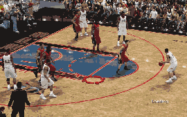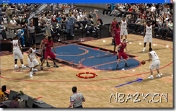 注意:最后抛球前得分后卫可以不要像我一样跑去三分弧顶那么远,自己也可以调整位置,SG和PF距离越近